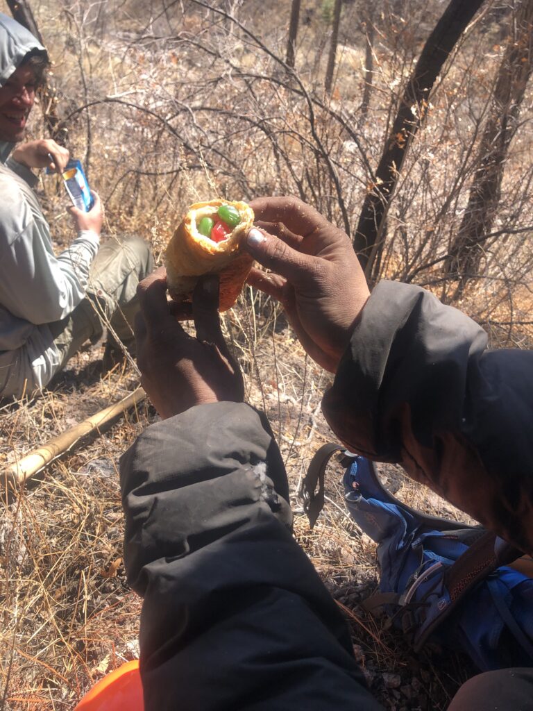 The lack of service and renewed silence of a Wilderness area led to much crew innovation, especially in gastronomy. Rebekah made a fateful grocery shopping pre-hitch trip to Costco and brought a dozen buttery croissants into the wilderness. Max brought Gushers, and the world would never be quite the same. The first documented creation and consumption (by persons older than middle-school age) of a “Gushoissant” occurred on March 7th, 2026 during lunch break, followed by the second creation on March 8th 2026 around 5:30 PM. Research and development is still ongoing on a cookie that is both chewy on the inside and crunchy on the outside.