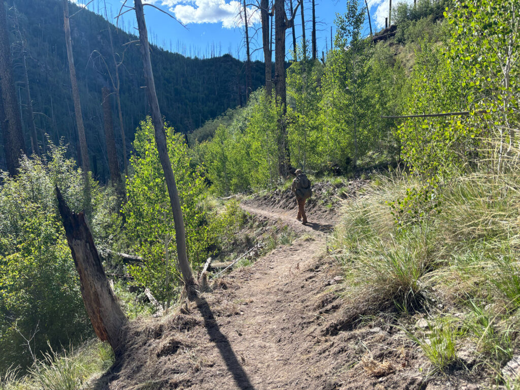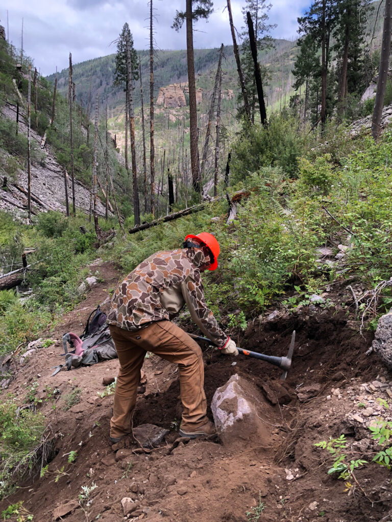 This hitch we returned to the Gila Wilderness, hiking in on the Redstone Trail to continue our work in Whitewater Canyon, sometimes called the Michael Jordan of canyons, with towering walls, a rushing creek, and trail that winds through some of the most dramatic country in the Gila Wilderness. We got to work alongside Nathan and Zach from the Glenwood District of the Gila National Forest for most of the hitch, and Eric also joined us halfway through the hitch after recovering from being sick, to help us perform ancillary services to the trail system.