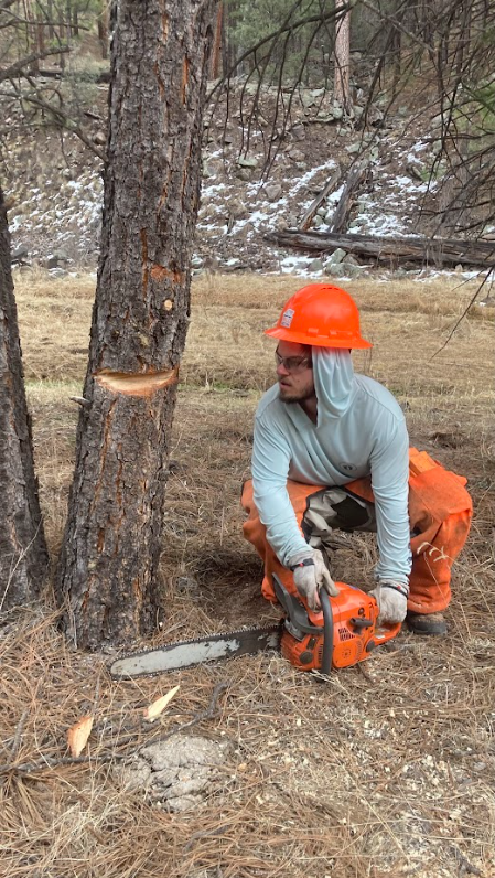 This hitch the crew returned to the fan favorite Dry Blue Creek just east of the Blue River near Alpine for the first time in the new year. Our goal remained the same as the many hitches before: to restore the meadow habitat of the Dry Blue by thinning ponderosa pine and juniper that is encroaching on the canyon bottom meadows and cottonwood/willow riparian habitat; and reduce fuel density to make the area more resilient to wildfire. We arrived with a trailer full of chainsaws (our first C!) and got to work.