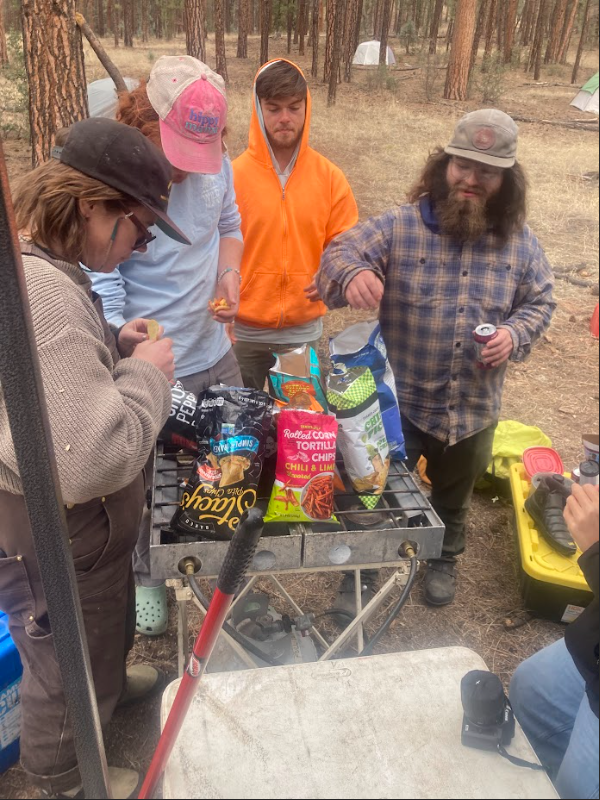 As a reward for all our hard work and efforts, the Dry Blue thought it would be fun to grace us with sub-freezing temps every morning and evening. Despite the overwhelming generosity of this amazing gift, unfortunately humans (unless you’re Max) were not built to survive those frigid temps. When there was no more work left for the day we returned to camp and kept warm by making group meals, sitting around the campfire (#2!), and sharing stories of our personal heroes such as Michel Lotito and Mr. Wojak.