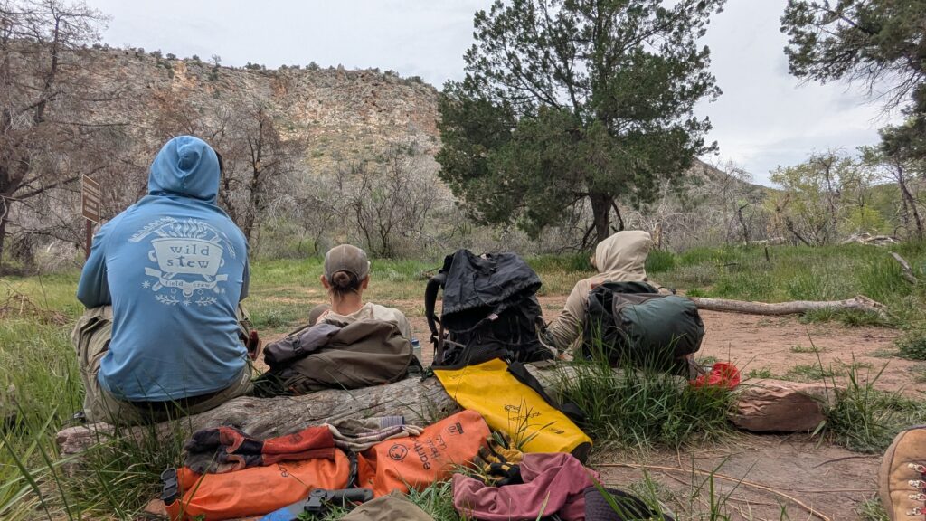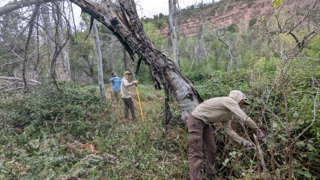 Last week, our crew of four hiked to Fossil Springs for the lovely swimming — and while there, we also removed some invasive Himalayan Blackberries. We hiked in from the Flume Trailhead and made it to camp by Wednesday evening. With the help of Eve from Friends of the Verde River, we flagged out the priority areas of Blackberries and we were treating them by Thursday morning.